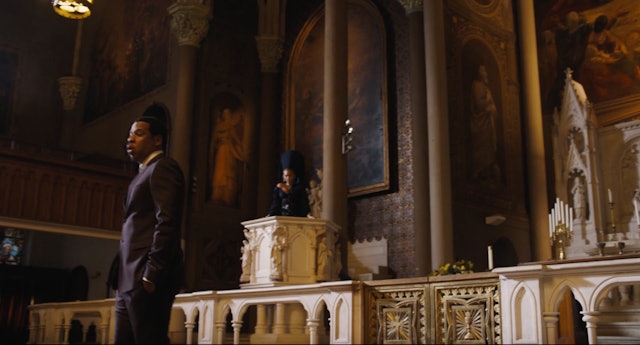 Positioned on the priest's pulpit in the church, Beyoncé's location in the shot, in comparison to JAY-Z, is likely pretty intentional. "What I also think is interesting non-verbally is her location and how she's presenting herself," says Wood. "She is high up... she's representing herself as above him." Beyoncé's later position in the priest's chair of the confessional booth is another prime example of this.